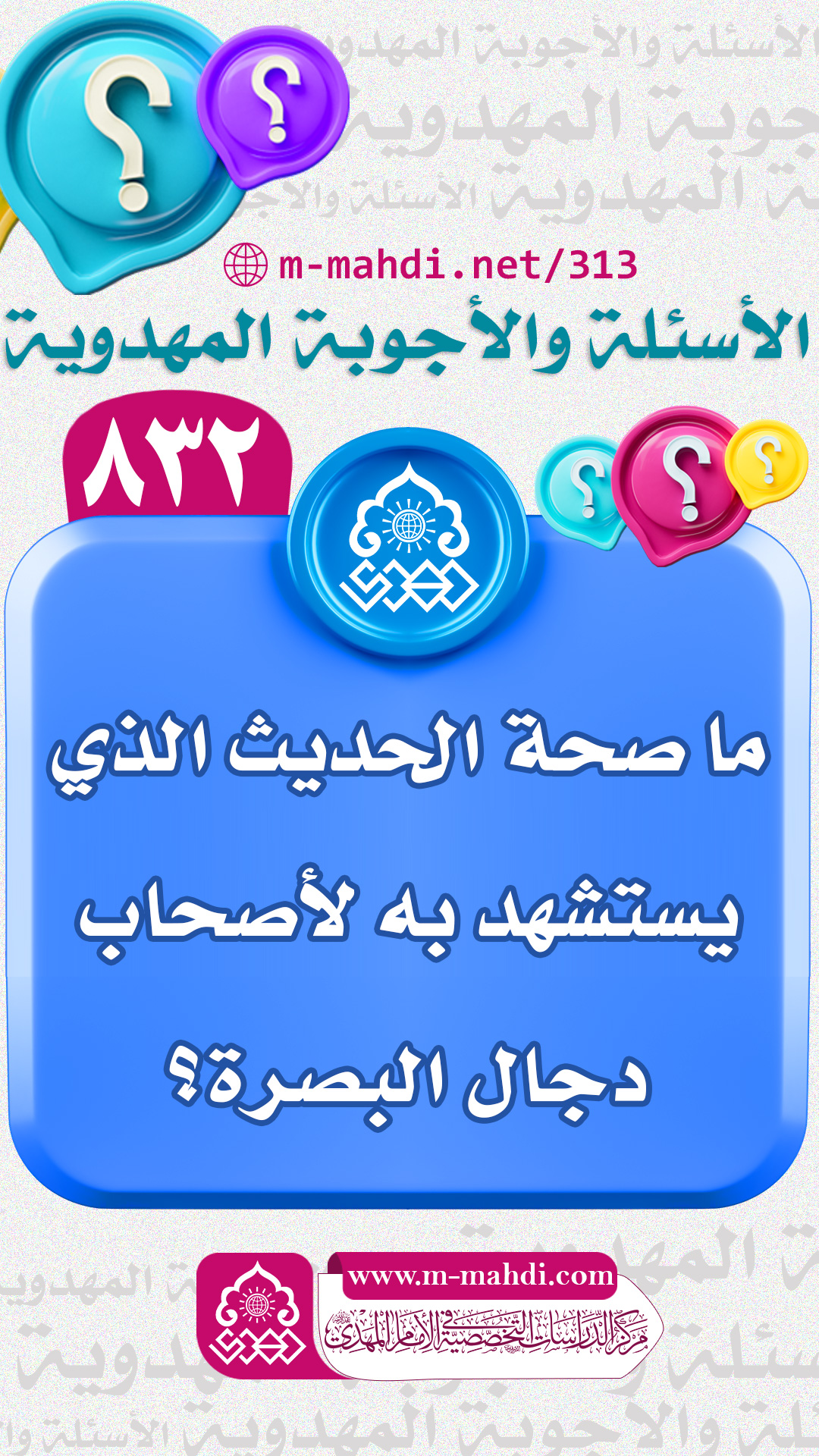 (٨٣٢) ما صحة الحديث الذي يستشهد به لأصحاب دجال البصرة؟