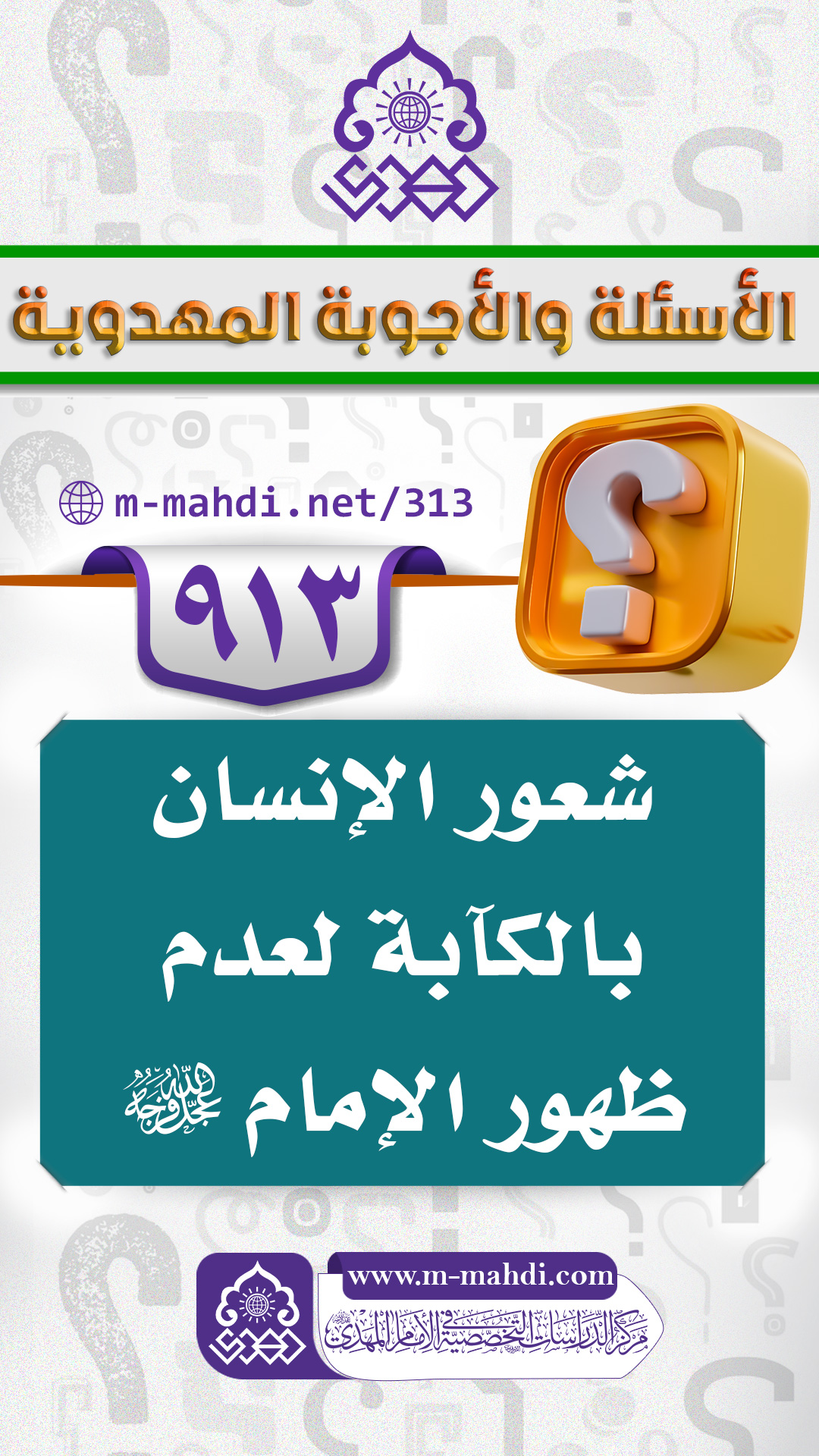 (٩١٣) شعور الإنسان بالكآبة لعدم ظهور الإمام (عجّل الله فرجه)